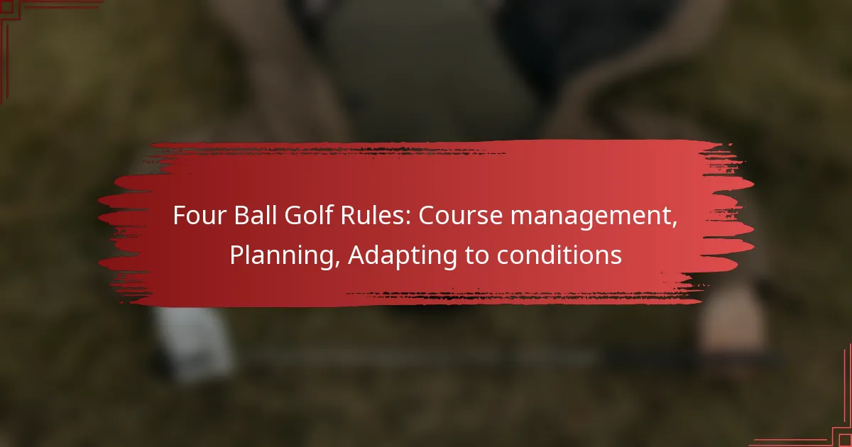 Course management in Four Ball Golf requires teams to analyze the layout and specific challenges of the course. Players should communicate about which holes may require conservative play and which present opportunities for aggressive strategies, ensuring that both team members are aligned on their approach to each hole.